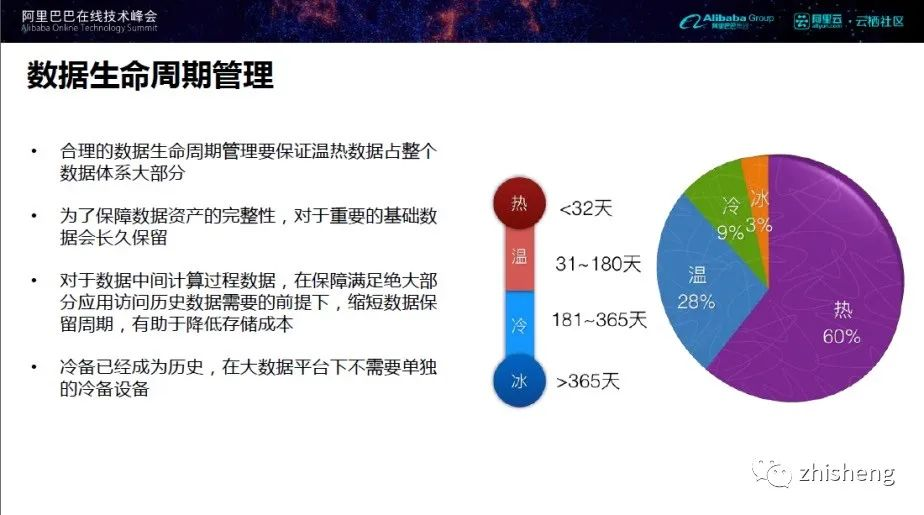 出于成本等因素的考虑,在大数据平台上我们依然需要对数据生命周期进行管理。根据使用频率将数据分为冰、冷、温、热四类。一个合理的数据生命周期管理要保证温热数据占整个数据体系大部分;同时为了保障数据资产的完整性,对于重要的基础数据会长久保留。