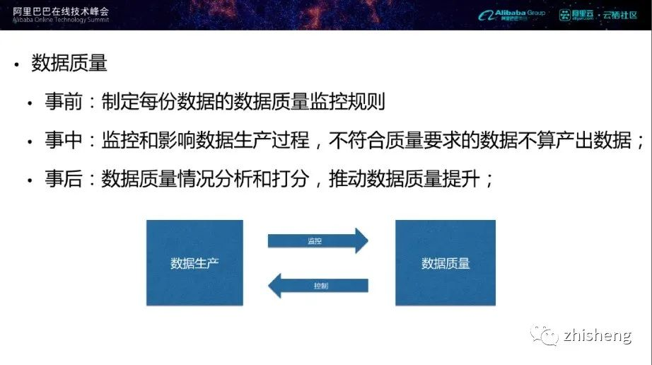保障数据质量,可以从事前、事中、事后入手。事前,我们可以通过制定每份数据的数据质量监控规则,越重要的数据对应的监控规则应该越多;事中,通过监控和影响数据生产过程,对不符合质量要求的数据进行干预,使其不影响下流数据的质量;事后,通过对数据质量情况进行分析和打分,将一些不足和改进反馈数据监控体系,推动整体的数据质量提升。