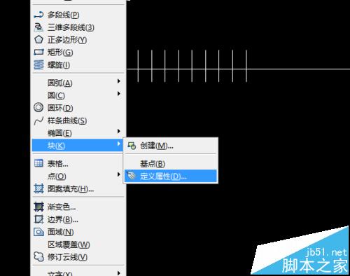 3、然后会出现一个下拉框,这里我们需要在下拉框中选择块的选项,然后会弹出一个选项,我们点击 定义属性。