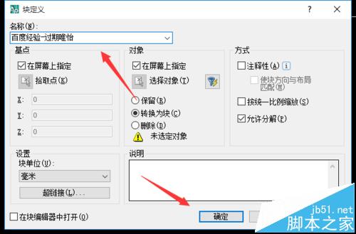 8、然后我们做的事情就是创建块,这里我们可以直接输入快捷键B,或者直接点击绘图--块-创建块也是可以得。然后输入自己好记的名字。点击确定。