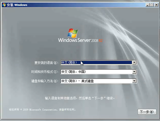 创建完成后打开电源。第一屏一般直接使用默认设置即可,点击“下一步”。