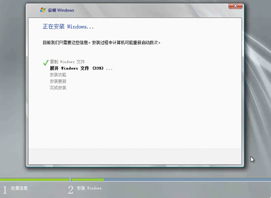 进入到安装过程中,中间系统会自动重启,直到安装完成。