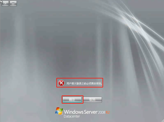 部署完成后,系统会自动进入到登录页面。第一屏提示“用户首次登陆之前必须更改密码”,点击“确定”进行更改。