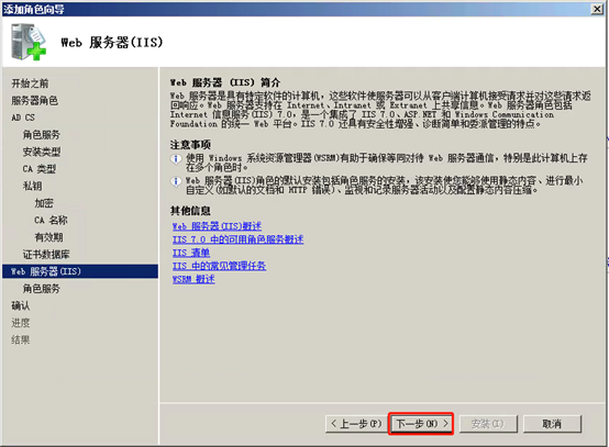 在补充安装的“Web服务器”页面,直接点击“下一步”即可。