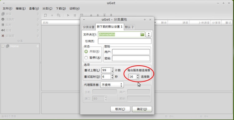 3.设置下载任务的属性(同一时候下载几个任务、多少个server、保存位置等)