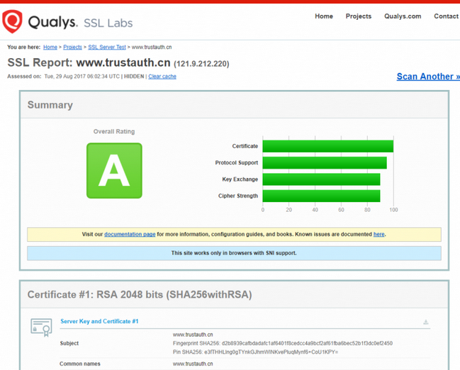 随着https的普及,带动了SSL证书的使用率。同时为了节省网站的成本,很多站长采用自签或免费的ssl证书,然后自己着手部署。认为自己动手,丰衣足食,自我完成https的升级。导致很多人在配置完ssl证书后,认为网站就很安全了。然而,这不是最佳的做法。如果错误的部署ssl证书非但无法对网站起到保护,反而还会开启一些不安全的漏洞。建议在成功部署了ssl证书后,可以在上对您的完整进行扫描,对您的 HTTPS 站点进行评分,如果是A,则说明您的站点安全性特别高。