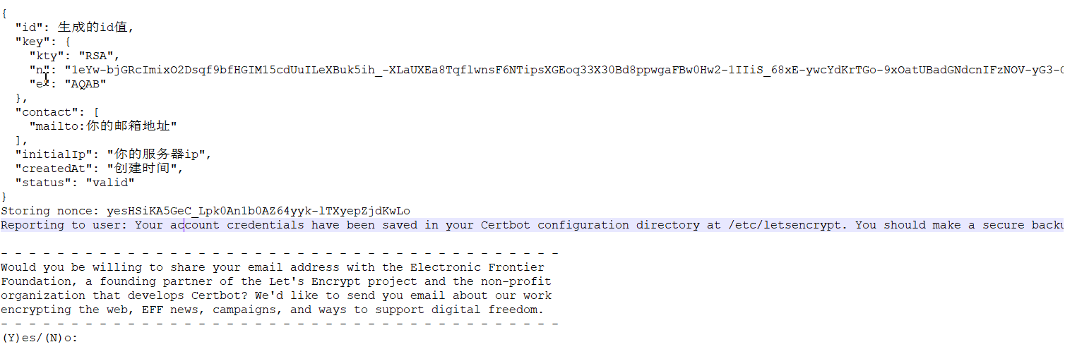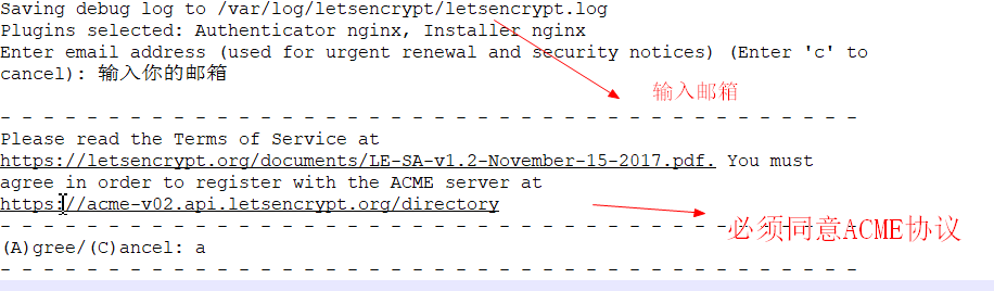 如果 --email和--agree-tos 省略,在第一次配置时会提示配置: