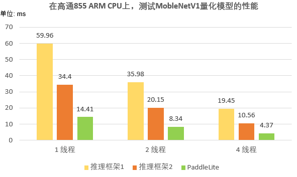 图 5 在高通855 ARM CPU,Paddle Lite测试量化模型的结果