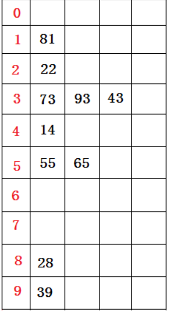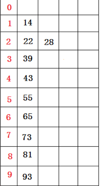 得到序列:14 22 28 39 43 55 65 73 81 93