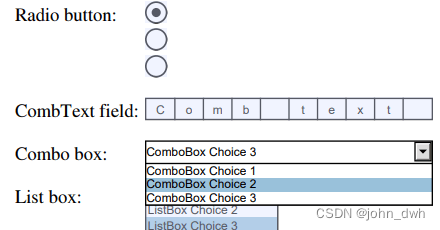 您可以将 PDF 用作输入表单,插入 UI 元素(如文本、复选框、单选按钮、列表、组合框)。