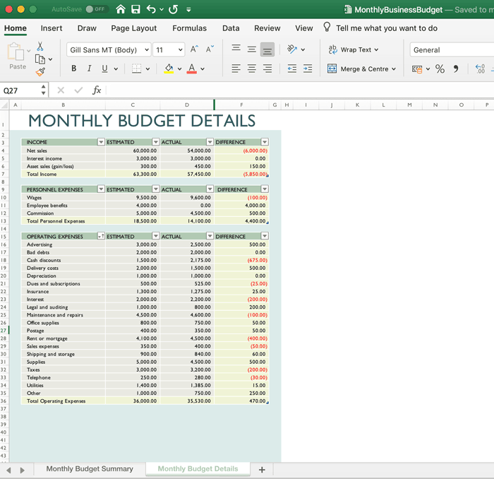 您可能需要对数据透视表的不同区域进行不同的格式化,以强调哪些数据属于哪里,比如:组织的月度预算报告。该报告将以 3 页打印,每页都会在最后重复该消息。