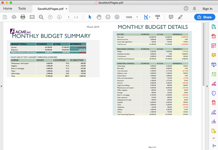 此报表用 Excel 的方式展示了公司现金流、净收入等数据。Excel 方式的最大特点就是以表格的形式显示数据,为了进行二次分发并保证此报表数据的真实性,可通过 GrapeCity Documents for Excel 文档API 来将 Excel 数据转换成 PDF,也可提取 Excel 表中某一工作簿的位置在 PDF 文件中进行渲染。