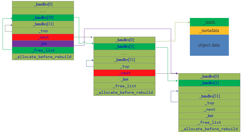 JNIHandles中保存了所有Java线程在执行本地方法时申请的全局对象句柄: