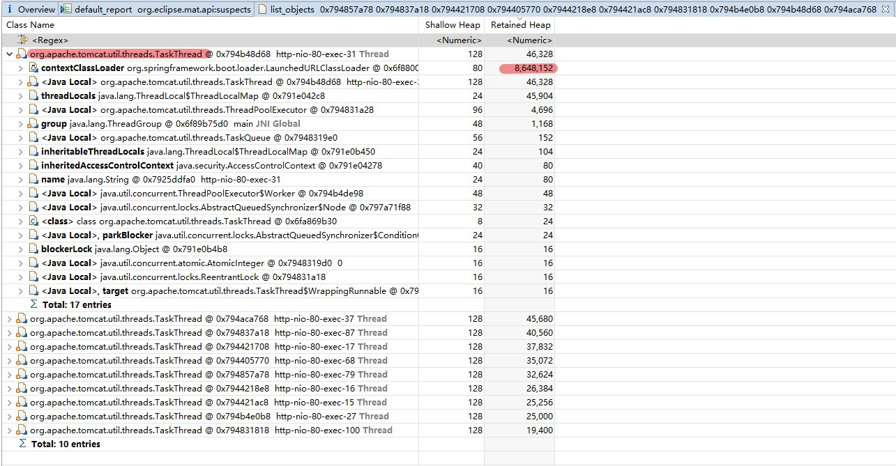 这里的指向的问题的线程是org.apache.tomcat.util.threads.TaskThread