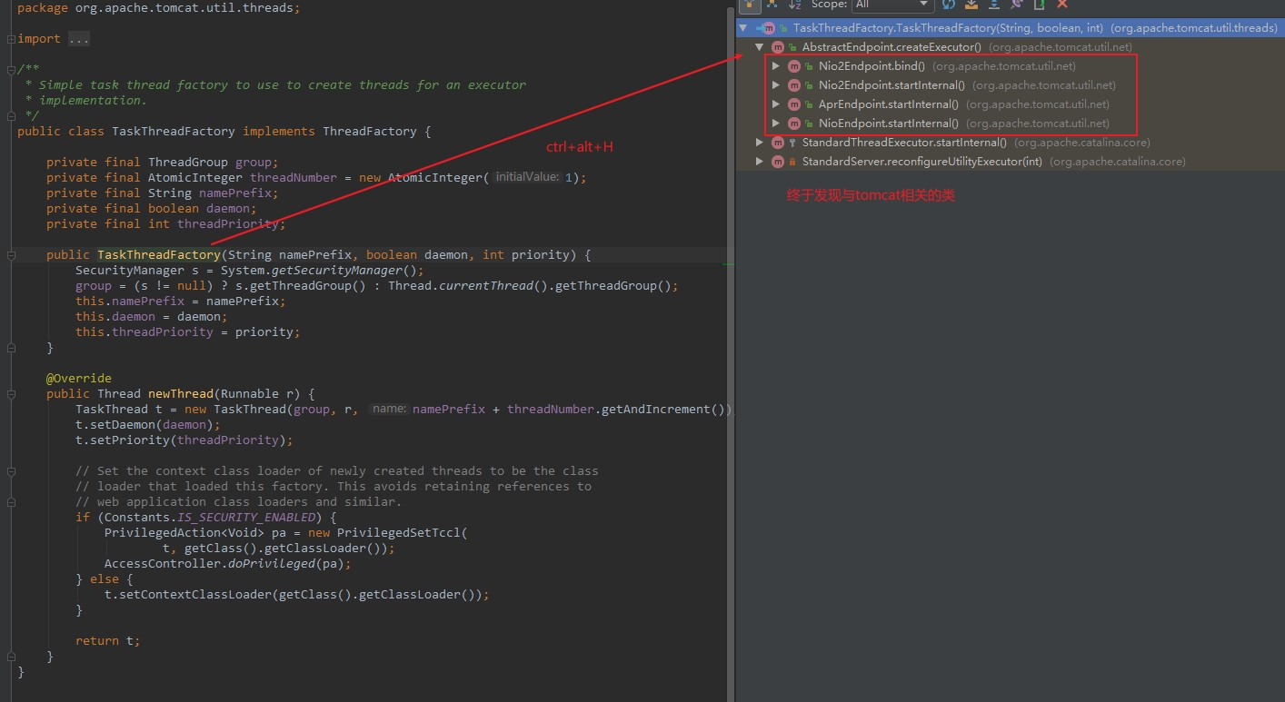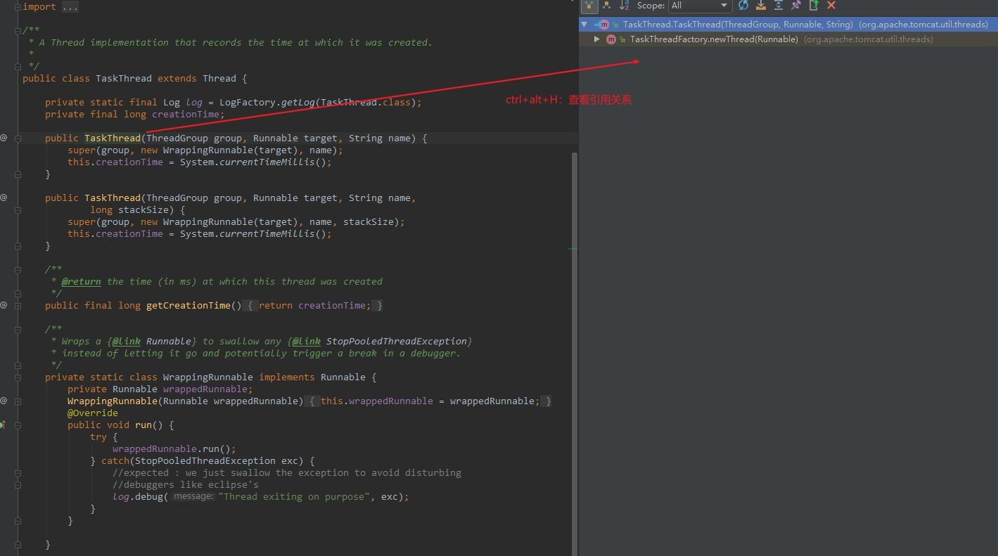 发现都是在org.apache.tomcat.util.threads.TaskThread类引用,我们打开这个类看看源码。