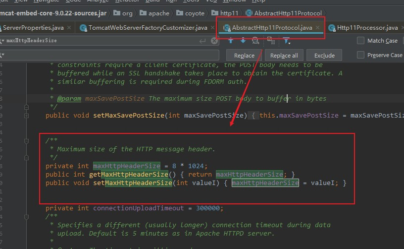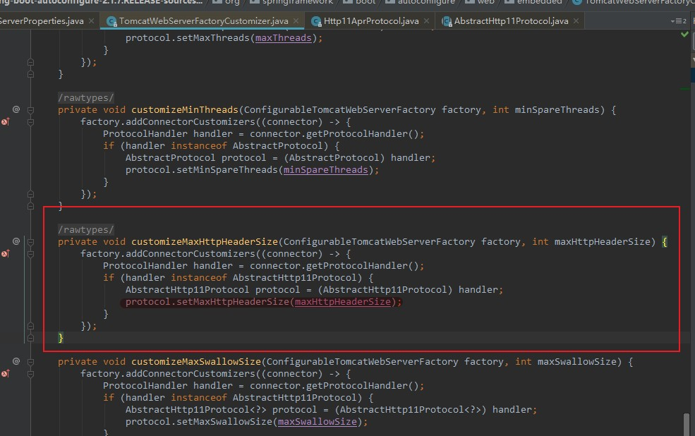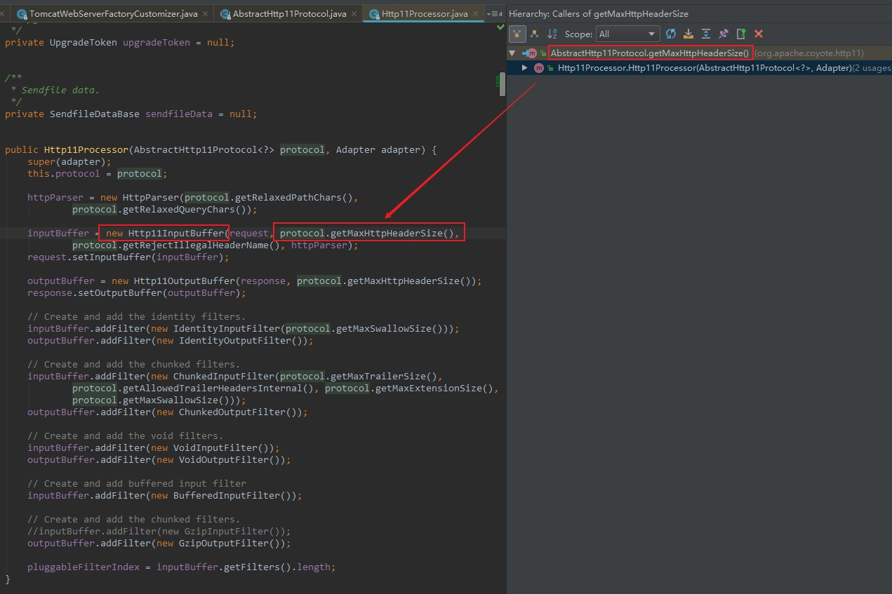 查看一下哪里调用getMaxHttpHeaderSize()方法