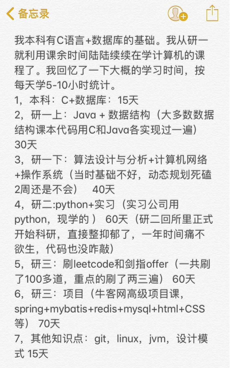 以上就是自学编程的经历。从退学经历竟然讲到了自学编程的经历,离题了...