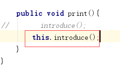 在一个类中直接使用本类中的方法加不加this,一个意思,暂时看不出区别,后期在继承中做区别。