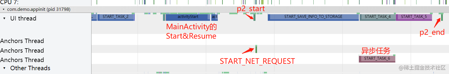 从整体来看,本来全在Application的onCreate中执行的任务大部分都后移了,App启动的任务会被稍微“提前”,对于部分任务,更是在MainAcitivty启动之后才执行的,所以达到了优化的效果。但是这种方法也会有缺点,这些后移的任务如果需要在主线程执行,可能会影响到界面的绘制,造成卡顿,可以考虑使用MessageQueue.IdleHandler,在主线程空闲的时候执行剩下的任务。