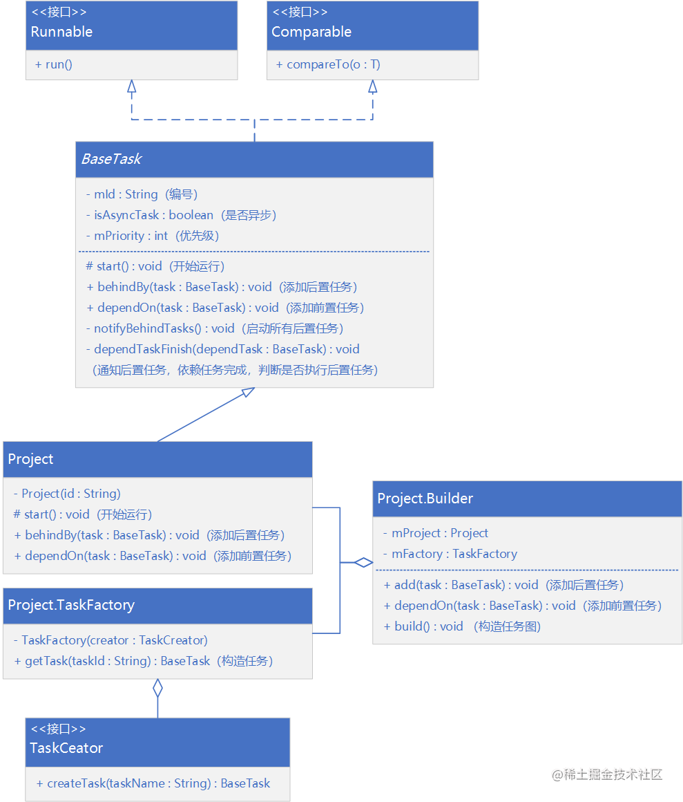 BaseTask是一个任务单元,其中定义了前置任务dependTasks与后置任务behindTasks,每个Task会有优先级,锚点任务优先级是最高的,优先级主要用来排序。