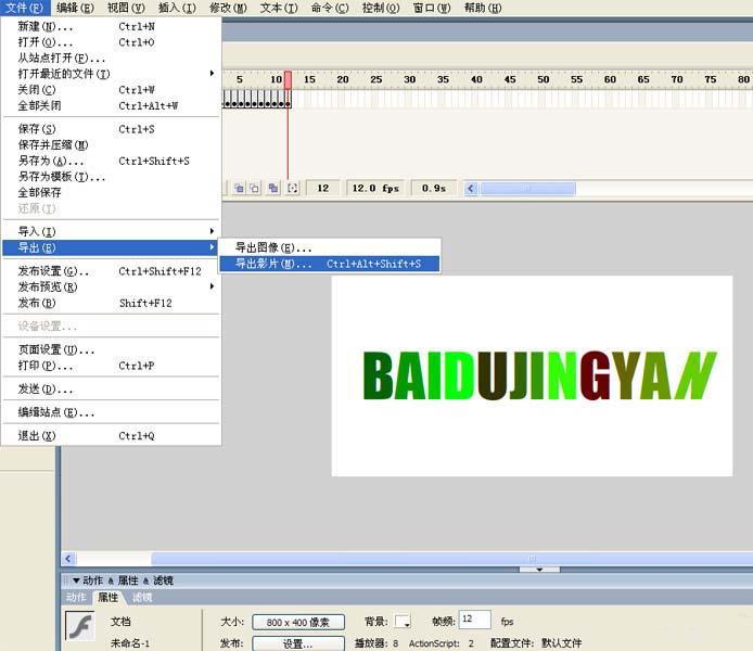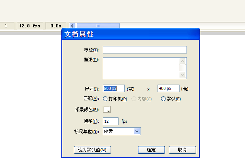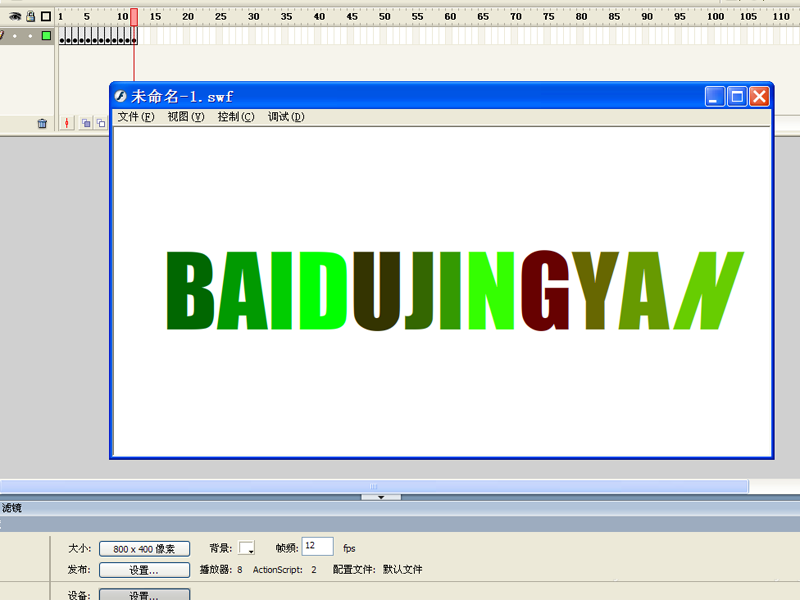 1、首先启动flash8,新建一个文档,设置大小为800*400,背景为白色,帧频为12fps。