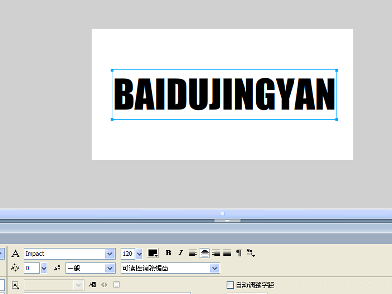 2、选择文本工具,输入字母内容,设置字体为impact,字号为120,设置全居中。