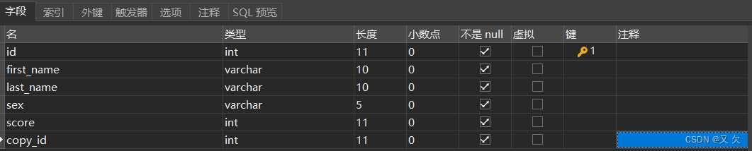比如我的数据库表结构 first_name字段varchar(10)、 last_name字段varchar(10)