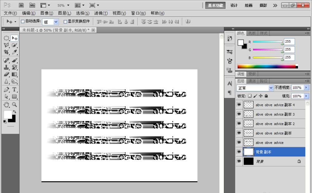 8、然后将图层按下alt键进行复制多个文字图层,调整合适的位置就好了,将背景副本设置为白色填充,如图