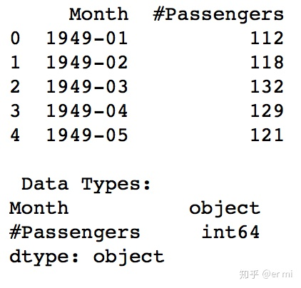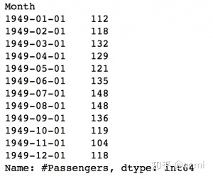 现在我们看到数据有作为索引的时间对象和作为列的乘客(#Passengers)。我们可以通过以下指令再次检查索引的数据类型。