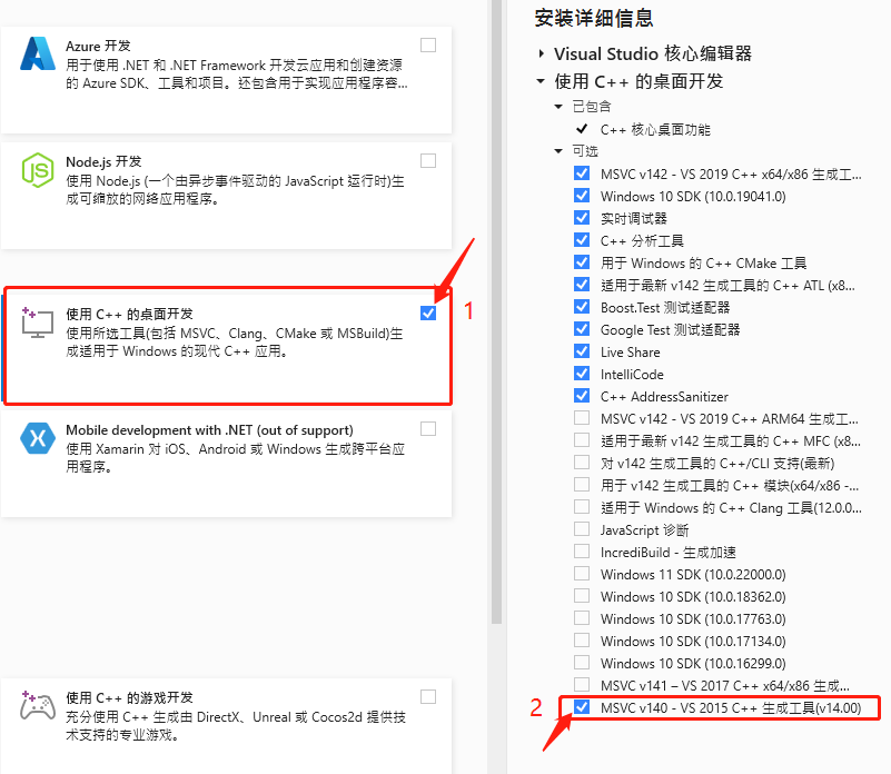 Tip:若已安装VS2015且已安装C++组件可跳过VS的安装