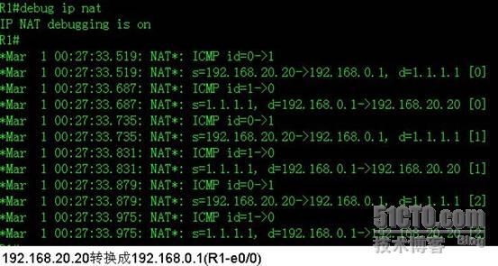 1、 在PC1 上cmd ping 1.1.1.1 R1 debug ip nat