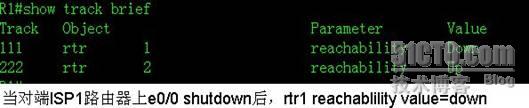 R1(config)#track 111 rtr 1 reachability……………………. 定义跟踪组