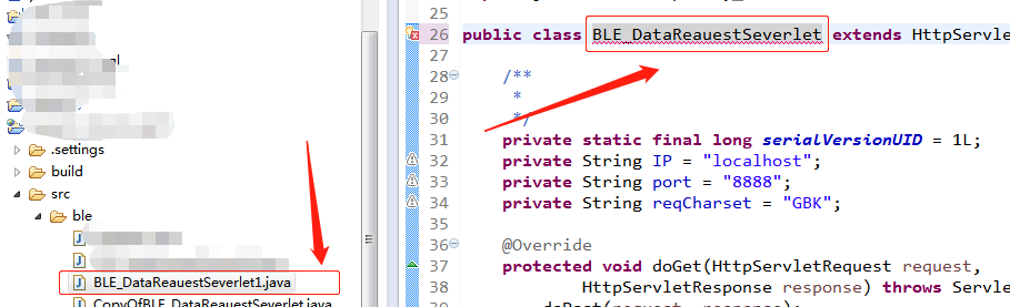 出现一样的类名的情况是:复制了一个类,复制的类名就在包中已经修改了,但是java文件里面定义的类名没有修改,如下图: