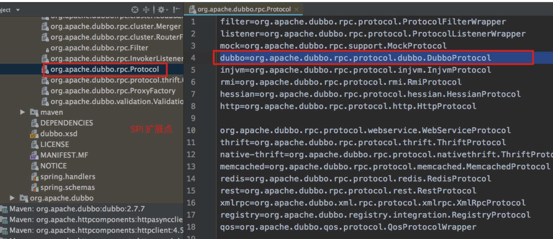 ---> 通过SPI确认 协议 dubbo是与否有class实现 org.apache.dubbo.common.extension.ExtensionLoader#hasExtension