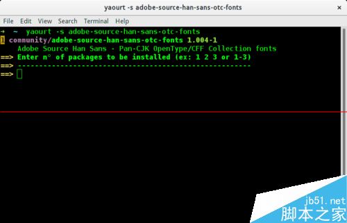 在终端输入:yaourt -s adobe-source-han-sans-otc-fonts