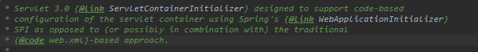 在spring-web中,定义了javax.servlet.ServletContainerInitializer的实现类org.springframework.web.SpringServletContainerInitializer,其注释对spi做了简单说明