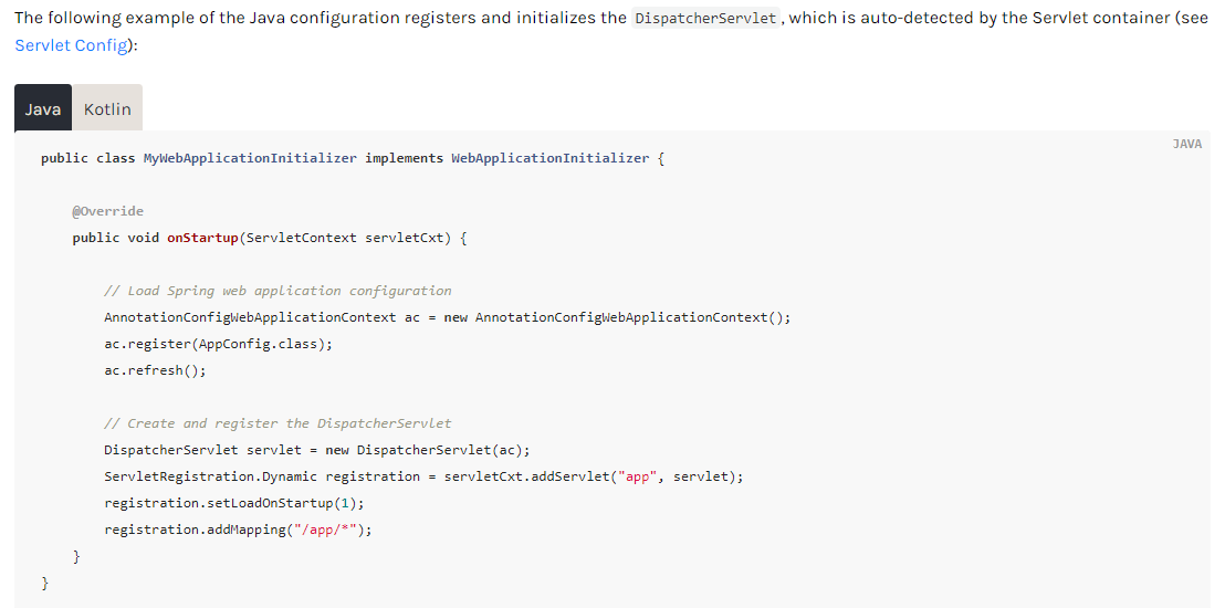 public class MyWebApplicationInitializer implements WebApplicationInitializer {