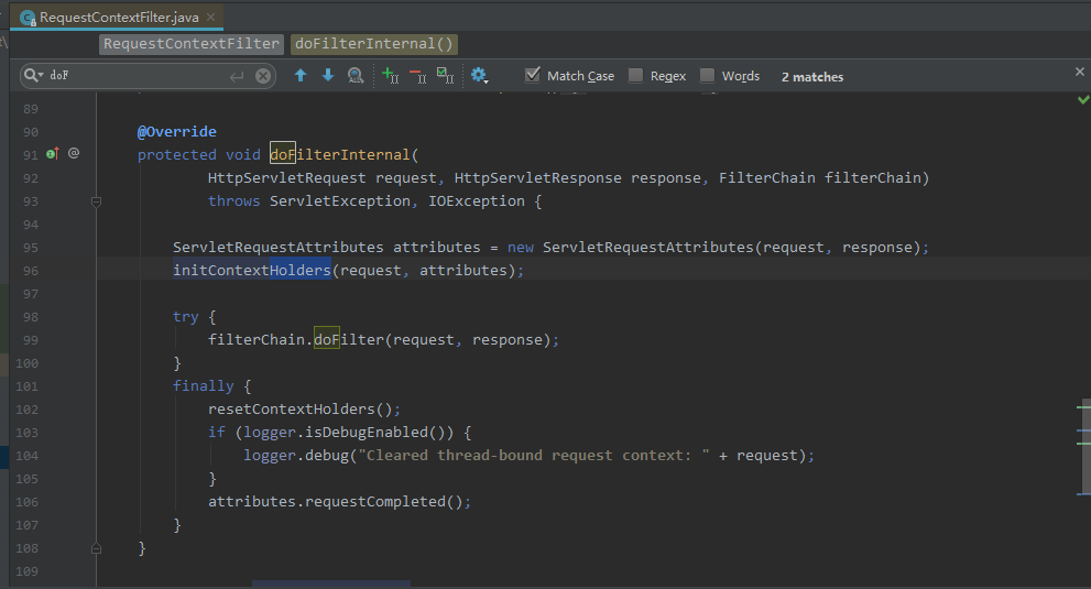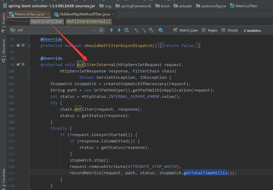 从源码我们可以看出我们的所有方法都经过了 这个过滤器,因为最终它会把我们请求的 时间,请求响应的状态,路径,以及请求的信息放入度量 的日志里面