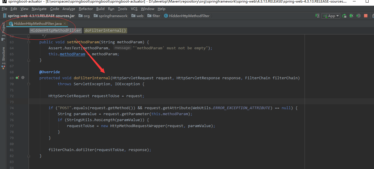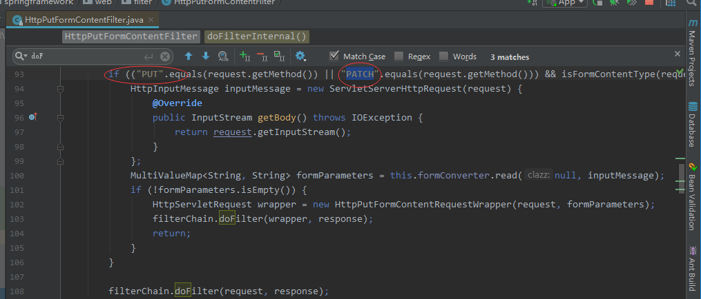 从源码我们可以证明 该过滤器会对put 方法 或 patch 方法的表单提交方法 进行过滤, 在请求参数不为空