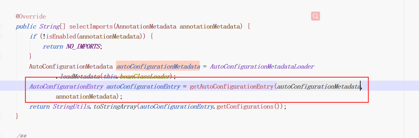 进入AutoConfigurationImportSelector的类。然后往下滑。