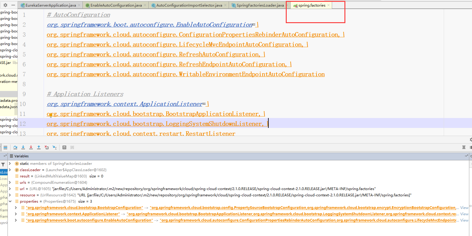 我们可以看到这个文件里有配置的信息,key是我们的注解,value就是对应要加载的配置类。这样就找到了对应的配置类。