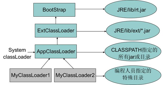 JVM启动时,会通过不同的类加载器加载不同的类。