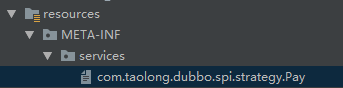2、在文件中编写想要实现哪个Pay的实现类(AliPay,WechatPay,BankCardPay),注意也要是全限定名。假如是是支付宝支付的模块,上面文件的内容:com.taolong.dubbo.spi.strategy.AliPay