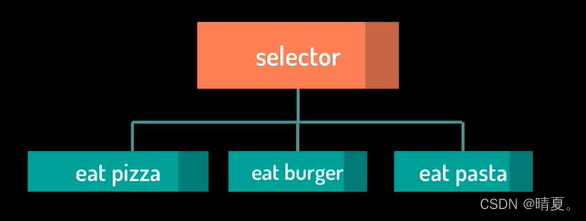 selector:只会选择一个来做,从左往右,只要有一个为真,即可,如下所示: