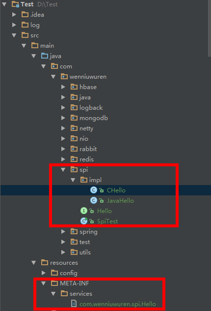 配置文件 META-INF/services/com.wenniuwuren.spi.Hello: