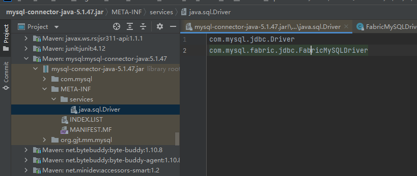 当我们系统中引入mysql-connector-java时,可以在对应的META-INF/services/目录下发现: