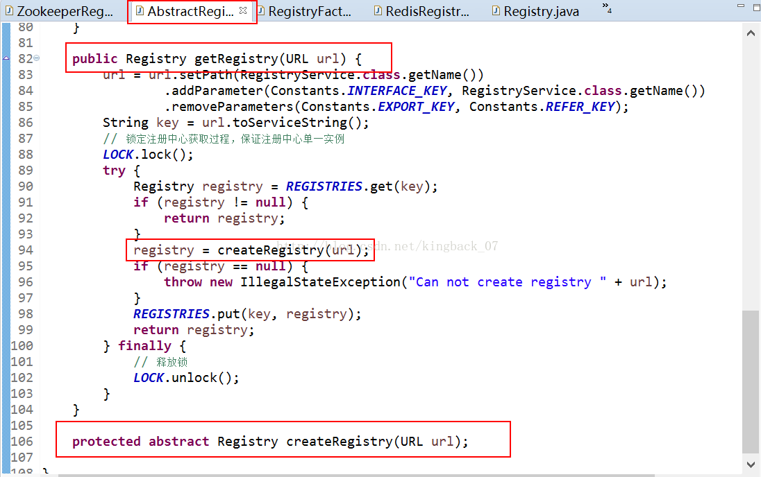 如上,两者分别实现了getRegistry(URL url)的方法返回不用的Registry实例