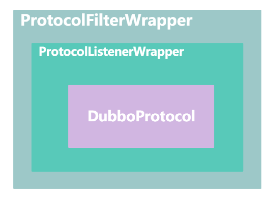 Wrapper类,那么在实例化完某个扩展点后,就会利⽤这些Wrapper类对这个实例进⾏包裹,⽐如:现在有⼀个DubboProtocol的实例,同时对于Protocol这个接⼝还有很多的Wrapper,⽐如