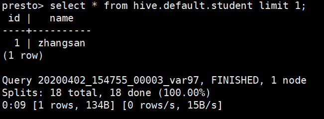 以上就是听话大炮最近收集整理的关于Presto 安装部署1.版本选型2.Presto 简介3.Presto 安装3.3 配置 connector4.启动 presto5.测试的全部内容,更多相关Presto内容请搜索靠谱客的其他文章。
