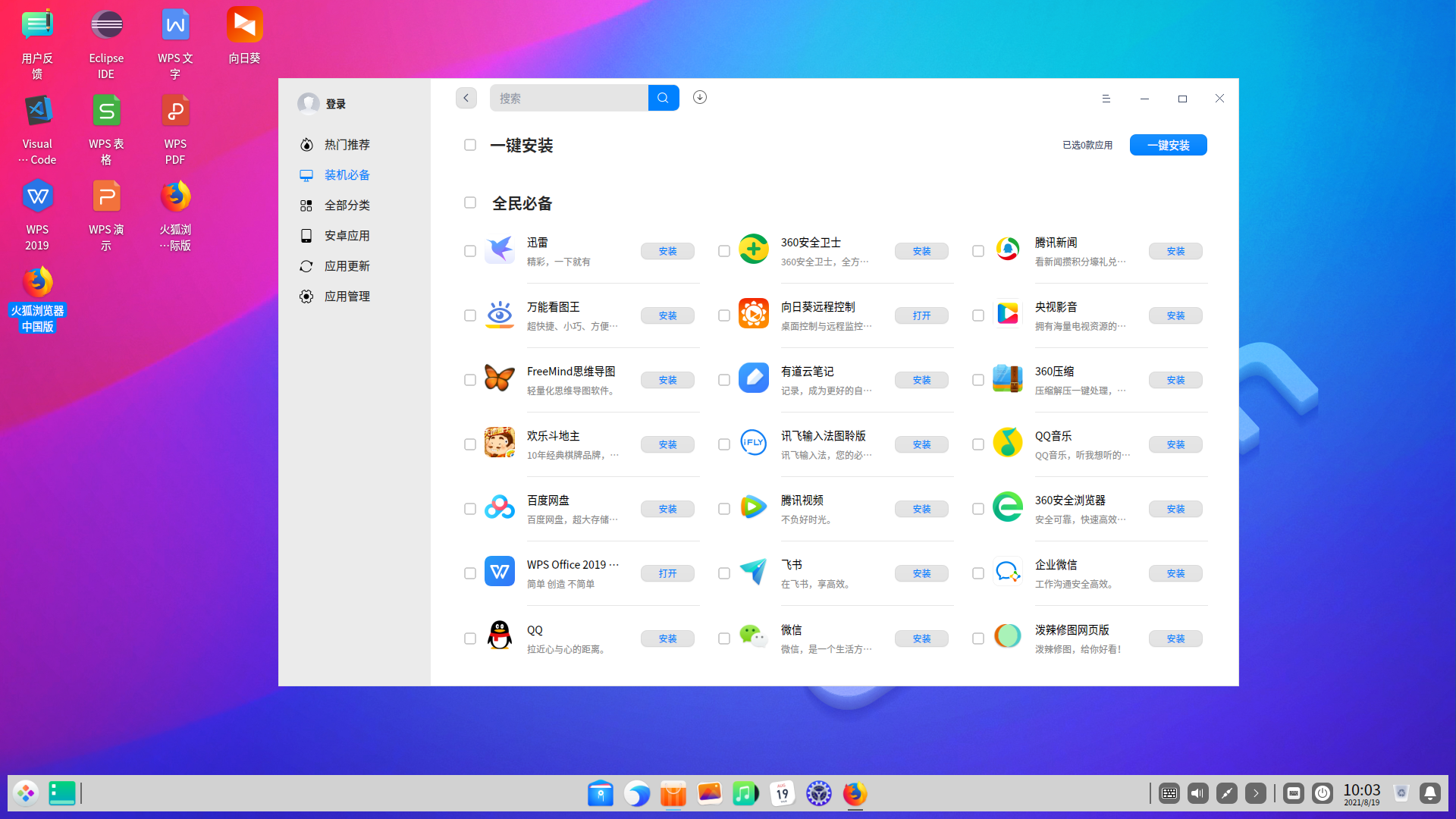 深度的系统里面有自己的一个商店,基本需要的软件都在里面。